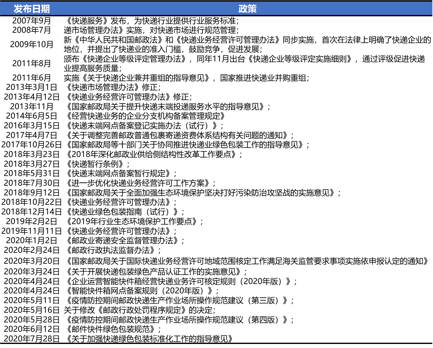 表:我国快递业相关政策法规
