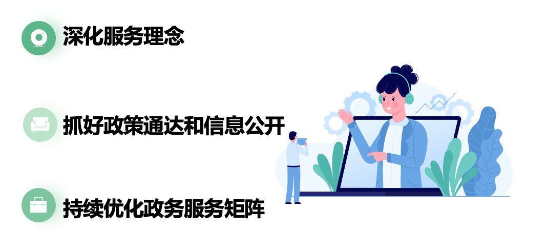 二是充分立足企业和群众视角,做好政策通达和政务信息公开服务。以需求为导向,掌握服务群众和企业“最后一公里”存在的堵点痛点,用企业和群众可高效精准获取信息的渠道、可快速理解的语言,完善“政策找人”、“数据匹配”等优惠政策直达机制,以政务公开闭环助推政务服务效能提升。