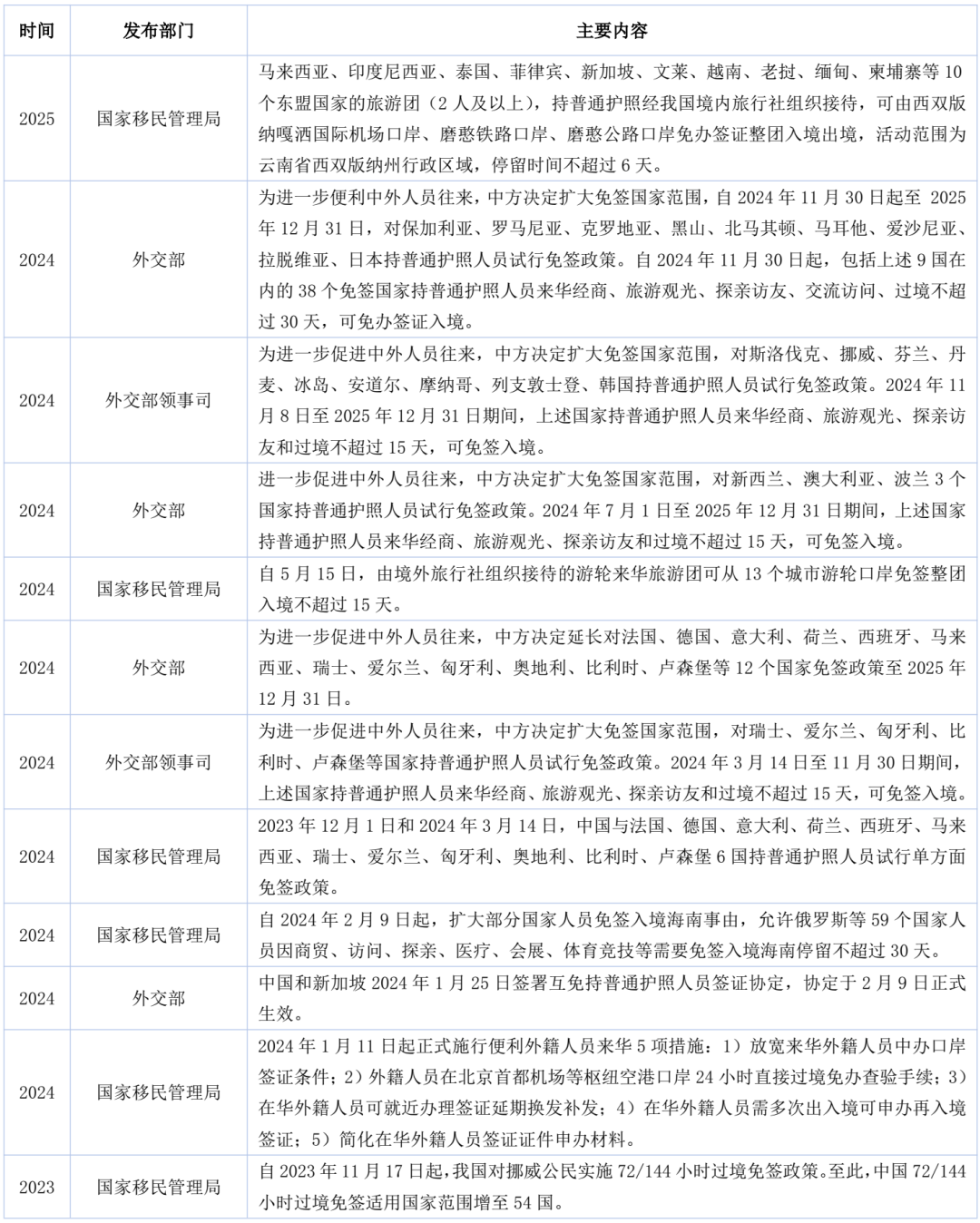放宽免签政策,为营商环境国际化开启“便捷之门”。自2023年起,文旅部、国家移民管理局、外交部等相关部门陆续颁布一系列出入境放宽政策。在政策利好推动下,“China Travel”成为海外社交媒体平台上的热点话题,热度持续攀升。截至2024年12月,72/144小时过境免签政策已经覆盖41个适用口岸、54个国家。免签政策的放宽,减少了行政壁垒,提升跨境交流效率,直接降低企业和个人的国际商务成本,以开放的姿态、包容的胸怀传递“中国开放的大门越开越大”的信号。