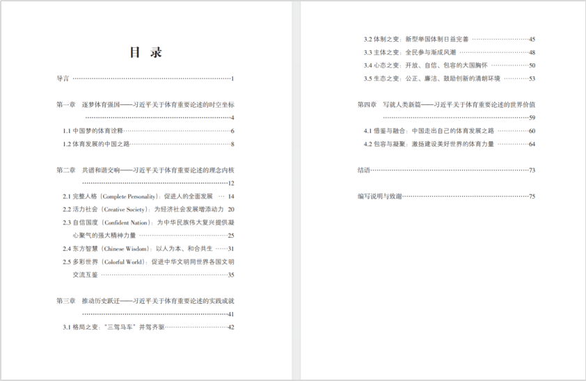 图:《迈向体育强国之路——习近平关于体育重要论述的时代价值与世界启示》报告目录