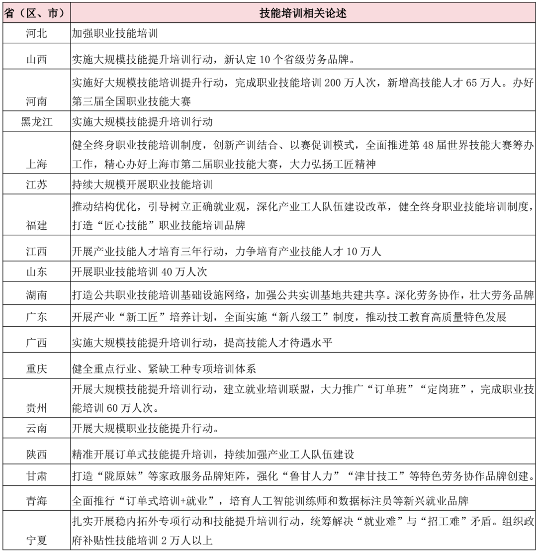 表4 2025年各省(区、市)政府工作报告中技能培训相关论述